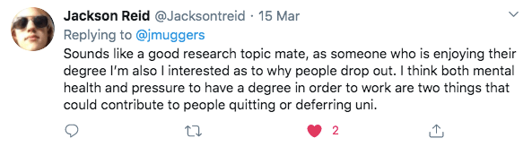 Baxter-Wright, D., 2018. ‘7 Students On Why They Dropped Out Of University‘. Cosmopolitan. Viewed 1 April 2020. <https://www.cosmopolitan.com/uk/worklife/campus/a20682119/why-students-dropped-out-of-university/>