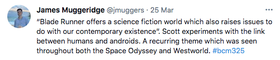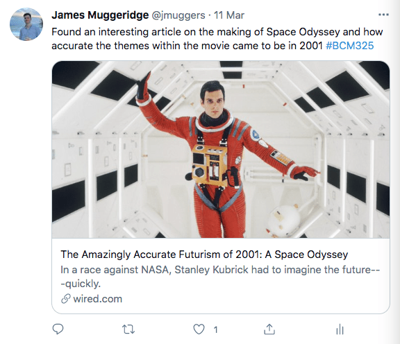 For background research on the movie, I found a website which showed how accurate the predictions made in the film came to be in today’s world. Before watching screenings, I made sure I researched the films beforehand. This already gave me an upper hand when pre-generating tweets and even creating tweets on the spot.