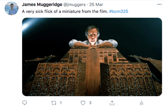 A successful tweet of mine which had pretty good engagement was the tweet pictured above. In arguably the best of scene of the film, Dave finds himself going insane. Kubrick’s use of colour joined together with creepy music emphasises the dramatic and confusing nature of the scene. A scene which has acted as a catalyst in today’s films such as Interstellar as Mathew Mcconnaughey goes insane towards the end of the film.