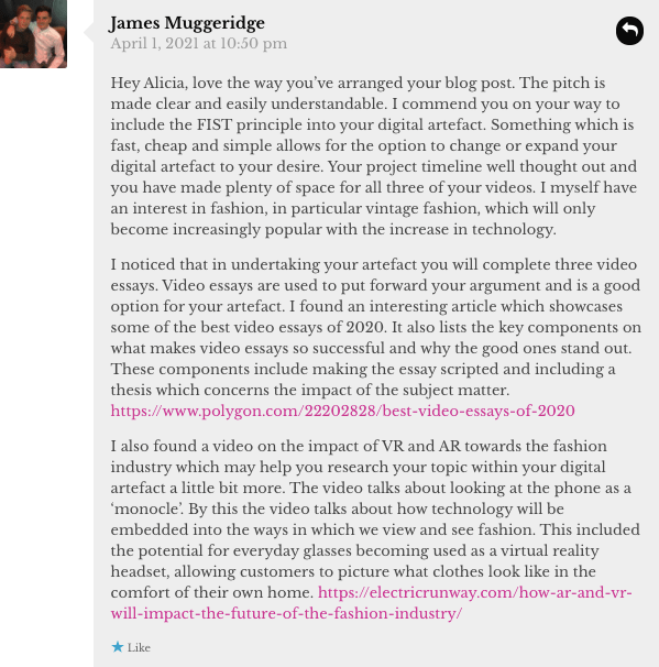 The idea of using the FIST principle in the early stages of my project appeals to Dan Ward’s ‘Simplicity Cycle’ as posting three posts provides a foundation for the future progression of the DA. Receiving valuable feedback proves that the foundation which I laid has proven to seek attention from my audience and is something which I can continue throughout.