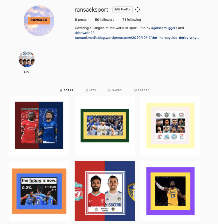 Ransack Sport is a DA which I started stemming from Ransack Media. Ransack Media is run by a group of inspiring journalists writing on topics such as entertainment, politics and sport. I branched out from Ransack Media, while posting my better articles on the main site, to create a niche account which appealed to a sports-based targeted audience. Ransack Media distributes content on Facebook and Twitter whilst Ransack Sport only distributes off Instagram. The goals for this new account were to build my following by posting sports articles.