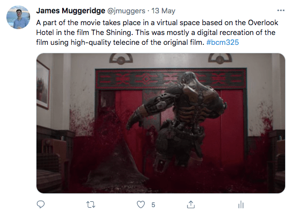 A successful tweet of mine which had pretty good engagement was the tweet pictured above. In arguably the best of scene of the film, Dave finds himself going insane. Kubrick’s use of colour joined together with creepy music emphasises the dramatic and confusing nature of the scene. A scene which has acted as a catalyst in today’s films such as Interstellar as Mathew Mcconnaughey goes insane towards the end of the film.